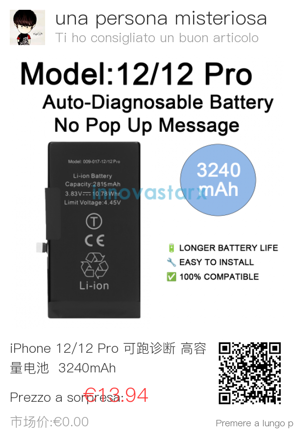 - Questa batteria consente di eliminare l’avviso di errore iOS ‘PARTE SCONOSCIUTA’.
