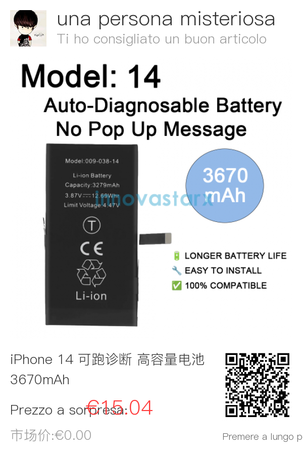 iPhone 14 Batteria ad Alta Capacità Autodiagnosticabile 3670mAh